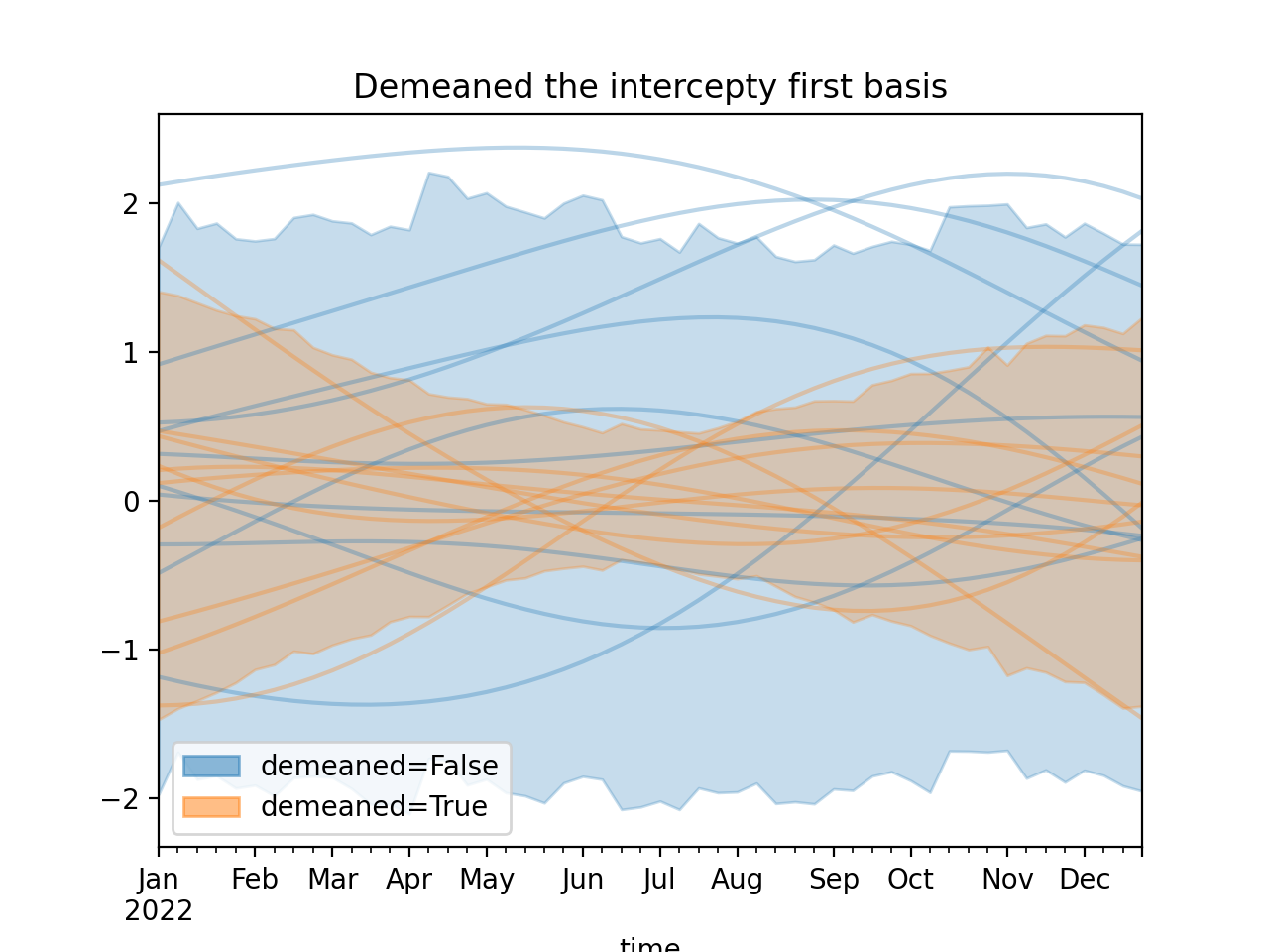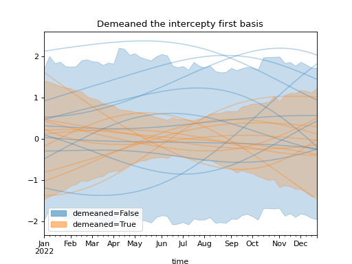 )Using a demeaned basis to remove “intercept” effect of first basis: